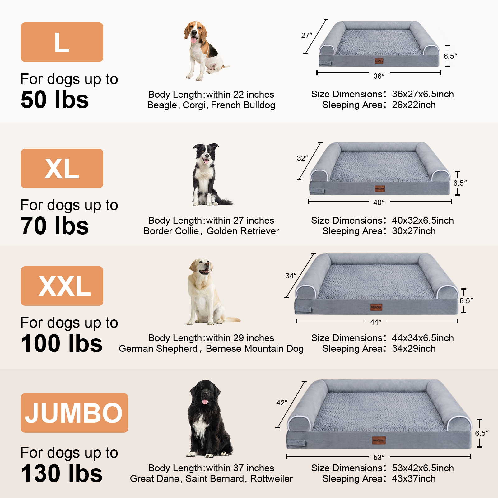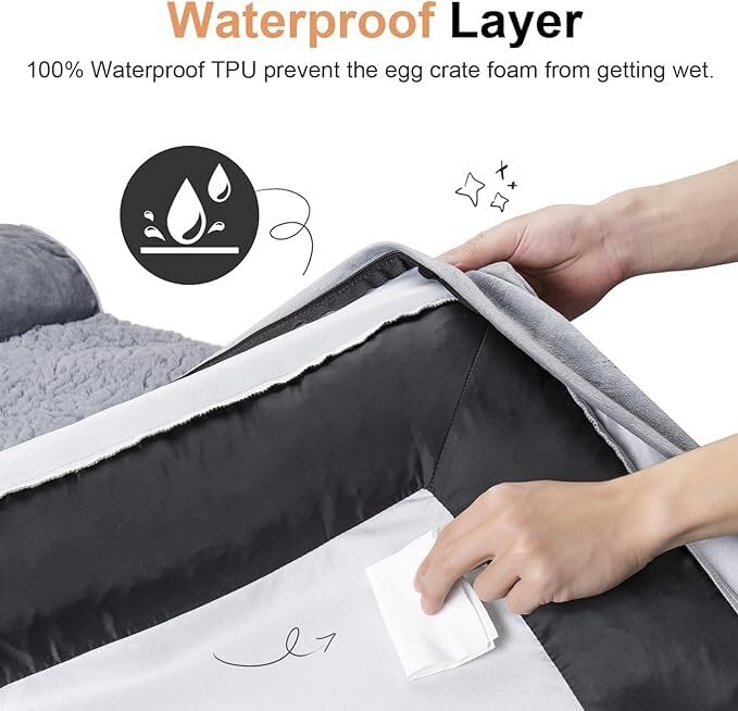 - 【Orthopedic Support】High density 3 inch egg crate foam is soft and elastic to help distribute weight evenly and gently cradle your pet's entire body to relieve pressure on his joints, especially suitable for older dogs and large dogs with arthritis; our orthopedic dog bed is designed to offer your pet unparalleled support for a deep, dreamy sleep